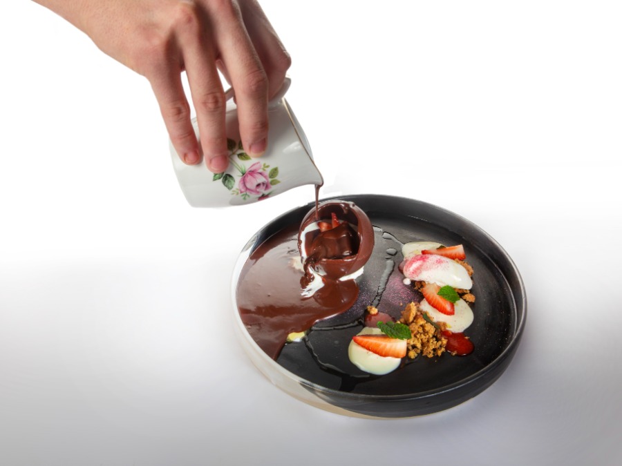 čokoladna krogla z jagodami in belo čokolado